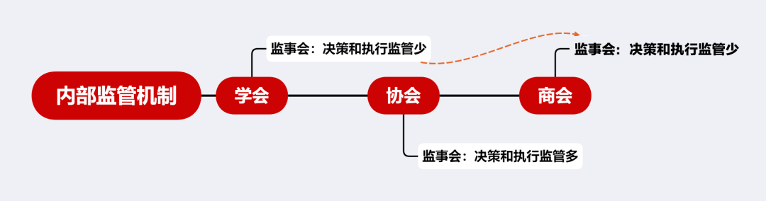 內部監管包括兩個方面的內容:一是學會、協會和商會資金與資產的監管,通常稱為財務監管;二是學會、協會和商會決策和執行的監管。作為財務監管,學會、協會及商會都有相應的管理辦法和制度,每次召開會員代表大會時,上一屆理事會要向大會報告經費使用情況,平常按照財務管理制度以及國家規定的審計制度進行管理。這里所要討論的是決策及其執行的監管。相比較而言,學會和商會的決策監管較少,甚至沒有相應的制度和機構,目前已有改善。新公布的《中國科學技術協會全國學會組織通則(試行)》明確規定,中國科協所屬全國學會都應該成立監事會。